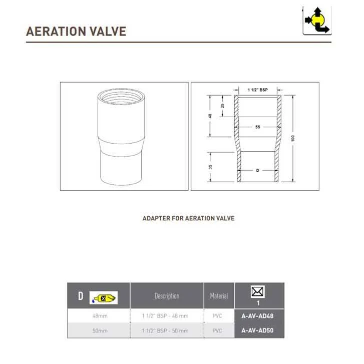 Designed for seamless compatibility, the adaptor fits 1 1/2" BSP connections, making it ideal for connecting aeration valves in your filtration or water treatment setups. Its 50mm PVC build guarantees a secure and tight fit, preventing leaks and maintaining system efficiency. By simplifying the integration of aeration valves, this adaptor enhances the overall functionality and reliability of your water treatment system.